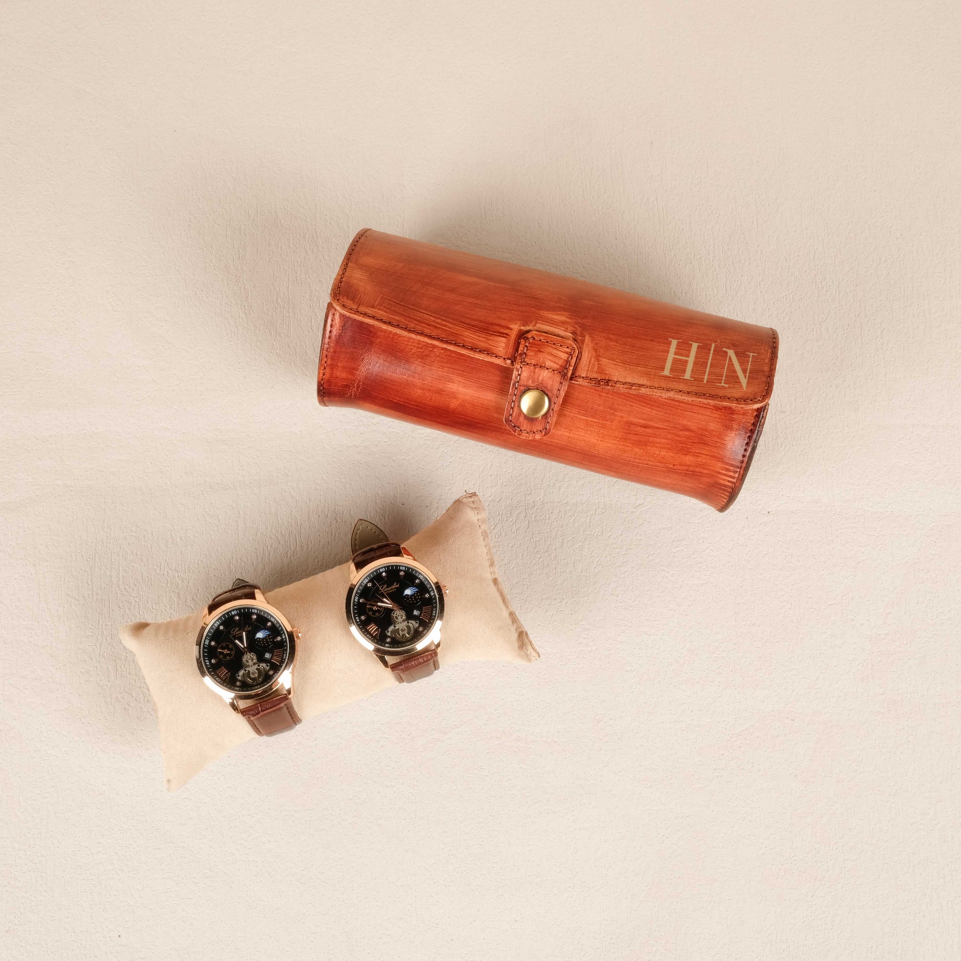This watch box embraces your timepieces in luxury, offering a protective sanctuary for 1, 2, or 3 watches! Each watch is cradled in a soft velvet core, delicately designed with a snap-on feature, ensuring a perfect fit for all watch types.
